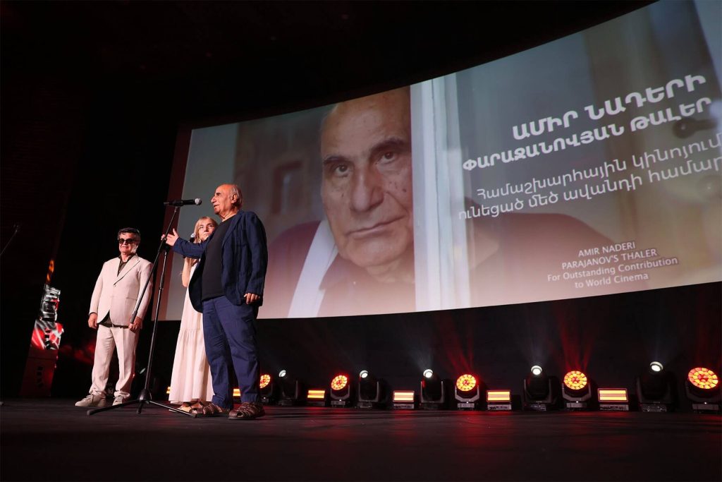 “Every time I come to Armenia, I return with the best memories, but tonight is different — it is the most memorable. I want to talk about someone whose presence demands deep respect. When I was a student, there was a cinema near our university. One day, I saw this great man cleaning the cinema windows himself to hang posters for his film. I stood and watched him for half an hour. From him, I learned that when you make a film, you must care about even the smallest details — and do everything yourself. Some people don’t just make films — they create paths. I’ve always dreamed of being near this great man. He taught me resilience. Tonight, I want to pay tribute to one of the greatest Iranian directors — Master Amir Naderi.”